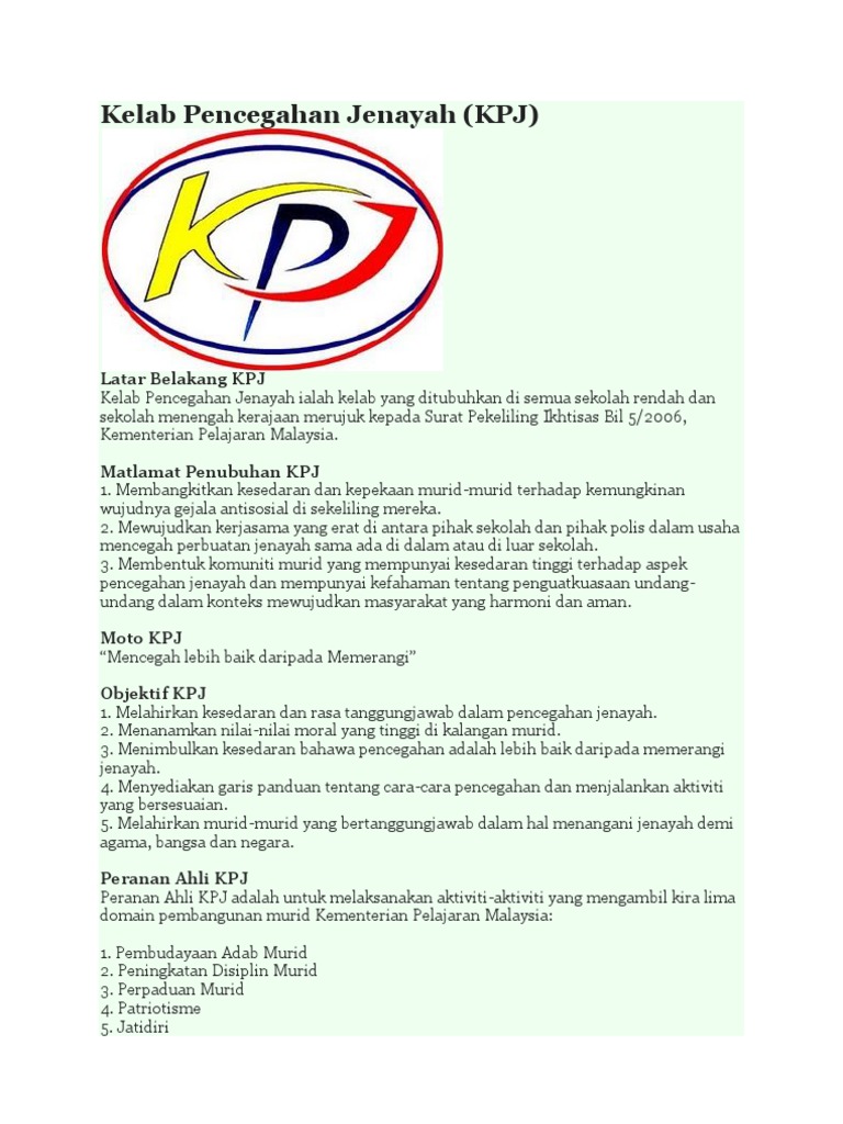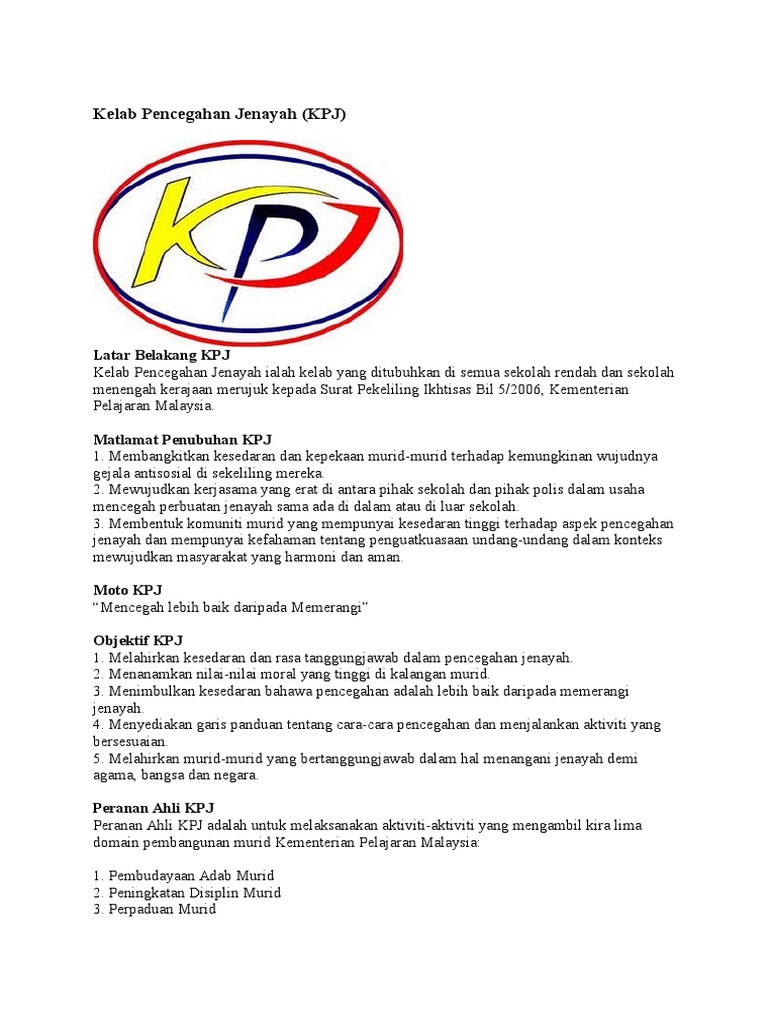 Kelab Pencegahan Jenayah Rendah Apa Itu Kpj Pdf